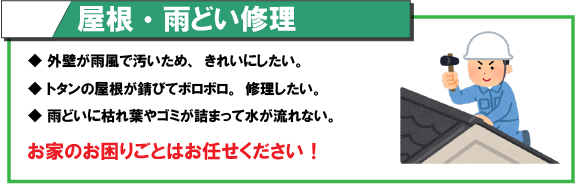 - 先日の台風で屋根のトタンが剥がれたので直してほしい。