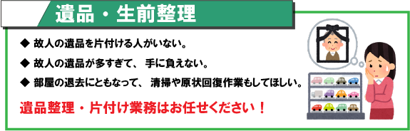 - 故人の部屋の遺品整理をお願いしたい。
