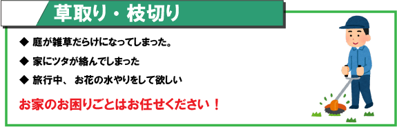 - 庭の草むしりと庭木の剪定をまとめてお願いしたい。