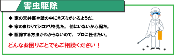 - 家にゴキブリが出たので今すぐ駆除してほしい。