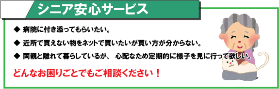 ご家族や友人が近くにいない、誰にも頼めない、気を遣って友人には頼みづらい…。